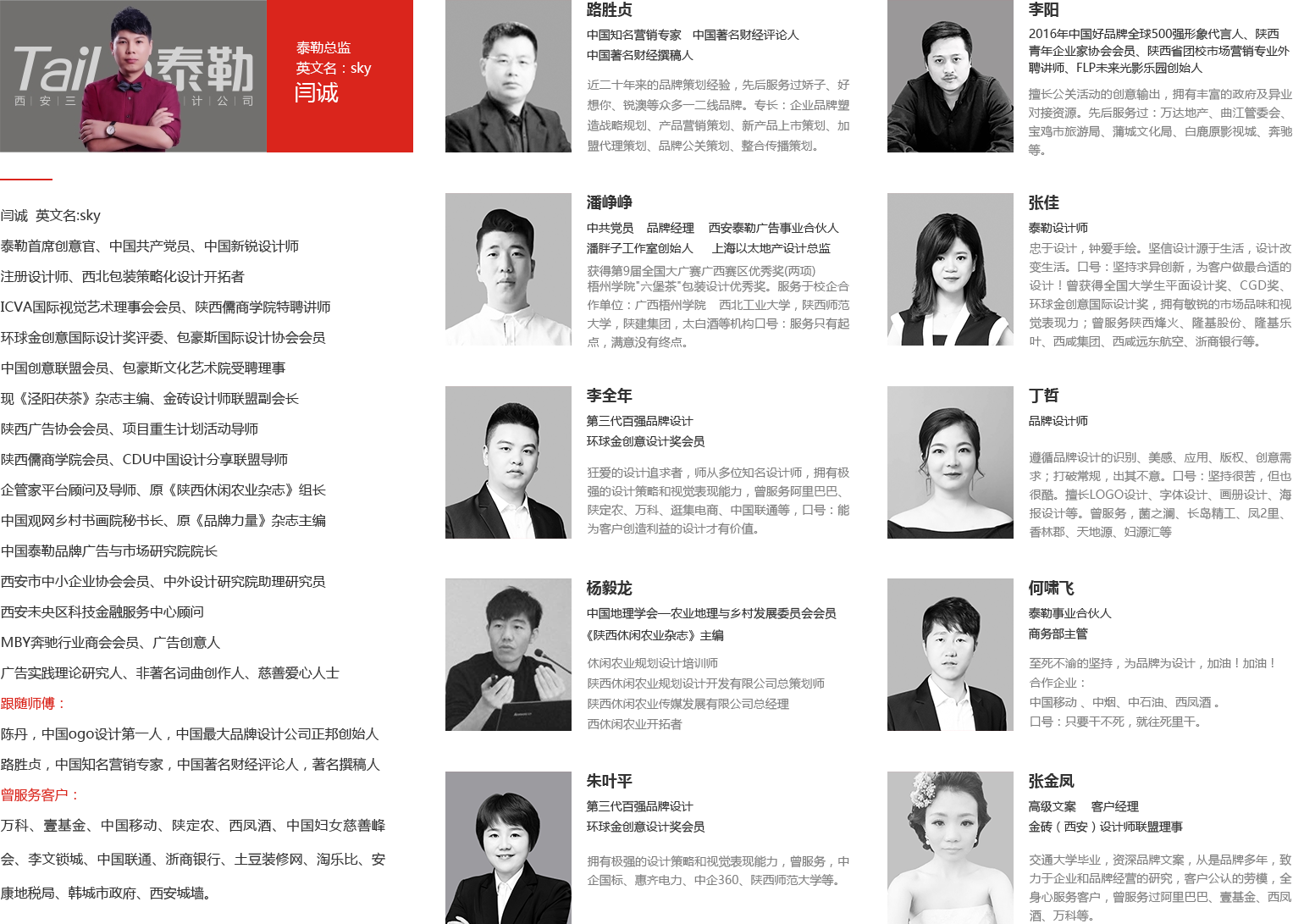 泰勒?是一家集品牌策劃、品牌設(shè)計(jì)、廣告?zhèn)鞑橐惑w的策略化設(shè)計(jì)公司,先后服務(wù)過近500家企業(yè)及品牌,像中國移動(dòng)、陜定農(nóng)、逛集電商等;泰勒區(qū)別于市場上95%的品牌設(shè)計(jì)公司,他們更注重于傳統(tǒng)的以審美為導(dǎo)向的廣告設(shè)計(jì),而泰勒是站在品牌、傳播、營銷的角度,運(yùn)用泰勒超級策略幫助企業(yè)更好的解決”賣”以及品牌發(fā)展的問題;500+